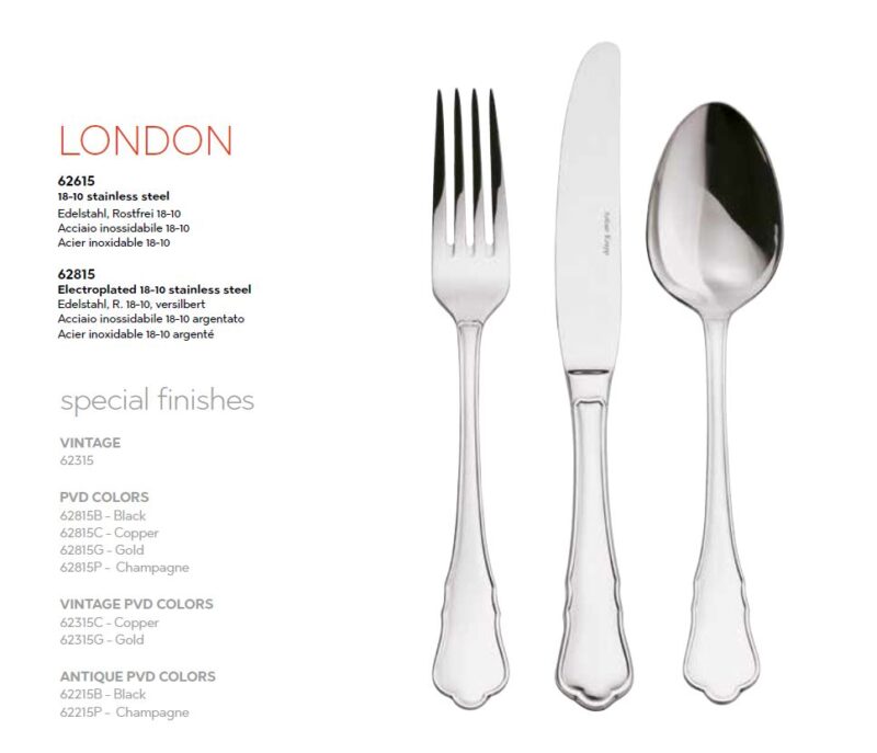 Bestek collectie Arthur Krupp LONDON is een typische Engelse klassieker. Een chique en stijlvol bestek, perfect voor die speciale gelegenheden óf om het dagelijkse tafelen naar een hoger niveau te tillen.