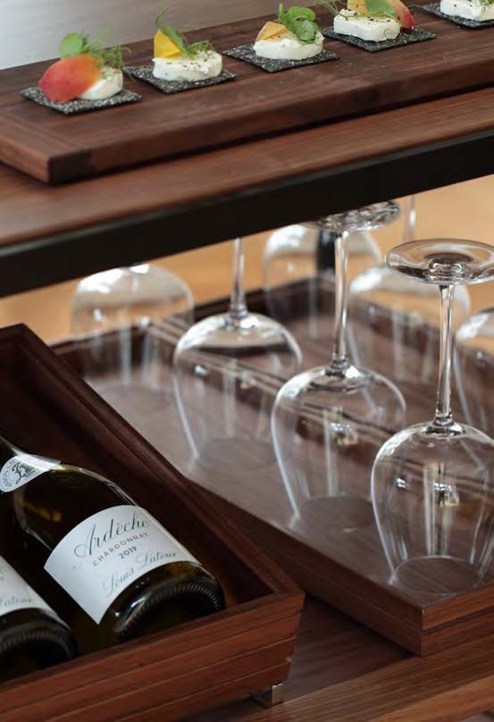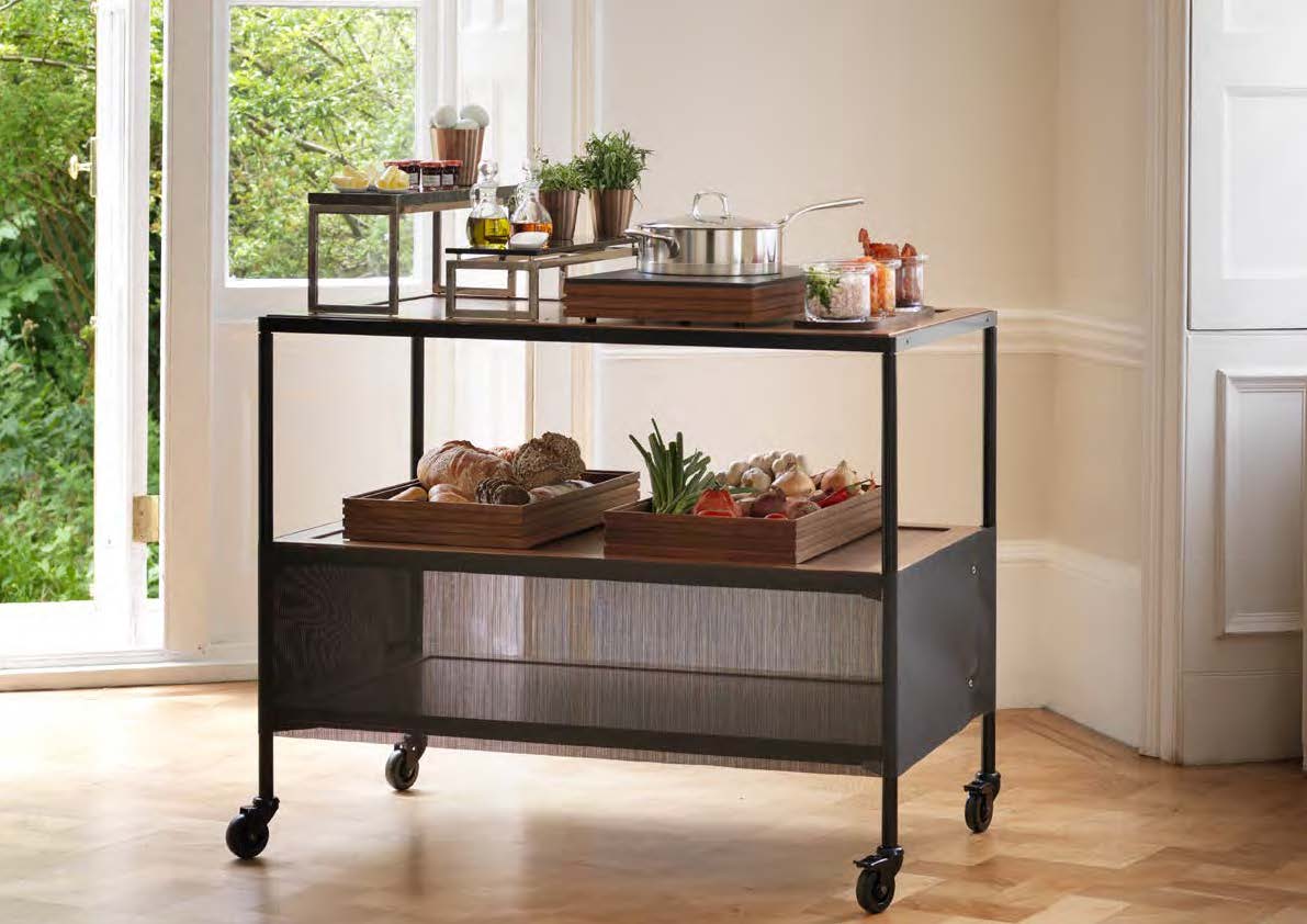 Craster Flow is een veelzijdig en modulair buffet display systeem. Het biedt oplossingen voor de presentatie van warme en koude gerechten en bestaat uit stapelbare trays, trolleys, standaards, deksels en verwarmings-/koelunits. De materialen zijn verkrijgbaar in whitewashed of zwart gelakt essenhout, natuurlijk eiken of donker walnoot. Bovenbladen zijn verkrijgbaar in minimalistisch helder of gerookt grijs glas en luxe wit, groen of grijs marmer. De frames zijn verkrijgbaar in roestvrij of