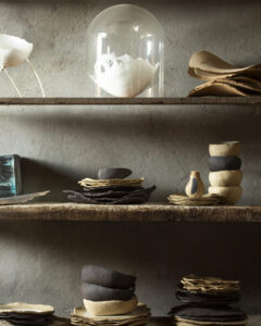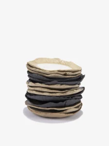 Het ontbreken van een pottenbakkersschijf bij het maken van deze collectie resulteert in een organisch en dynamisch artistiek proces. Elk stuk wordt met de hand gevormd, waardoor kleine vervormingen ontstaan die niet als gebreken worden gezien, maar juist als verbeteringen die karakter en uniciteit toevoegen. Net zoals de natuur unieke wonderen voortbrengt, zijn geen twee stukken in deze collectie volledig identiek, waardoor elke creatie een uitzonderlijk kunstwerk is.