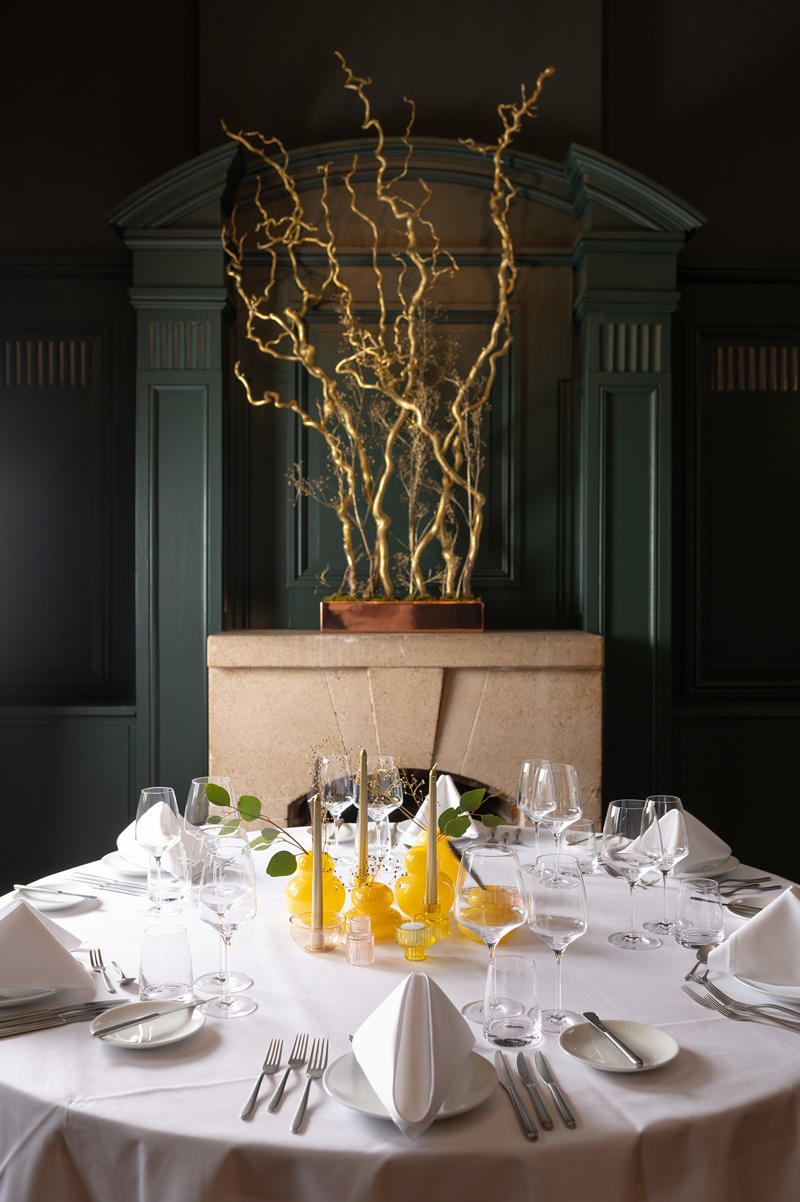 Een locatie als deze, vraagt om een bijzonder en uitgesproken inventaris. Mettre a Table leverde voor Delbrock met veel plezier een mooie mix van maatwerk accessoires en porselein, bestek en glaswerk van o.a. Rosenthal (Blend), Sambonet (bestek Hannah met Antique finish) en Stölzle (o.a. Experience).