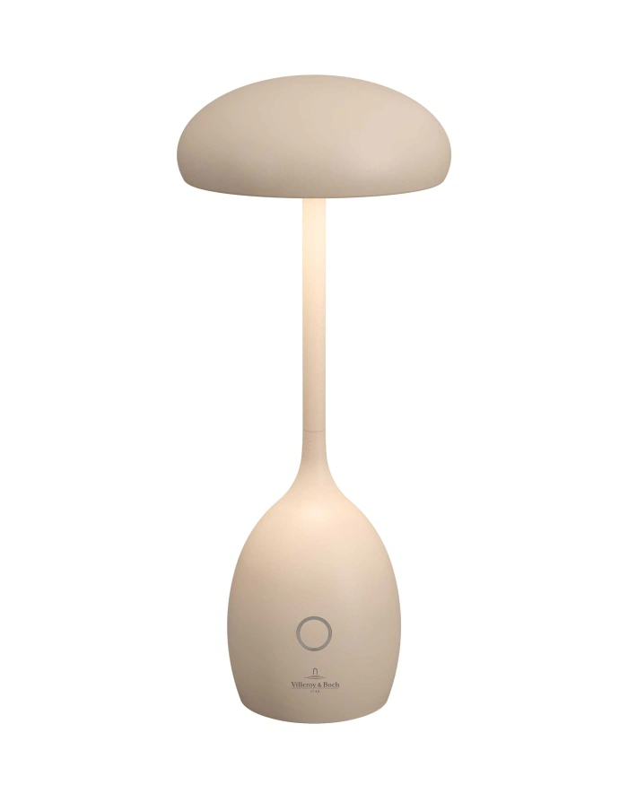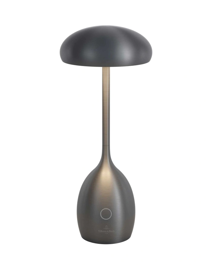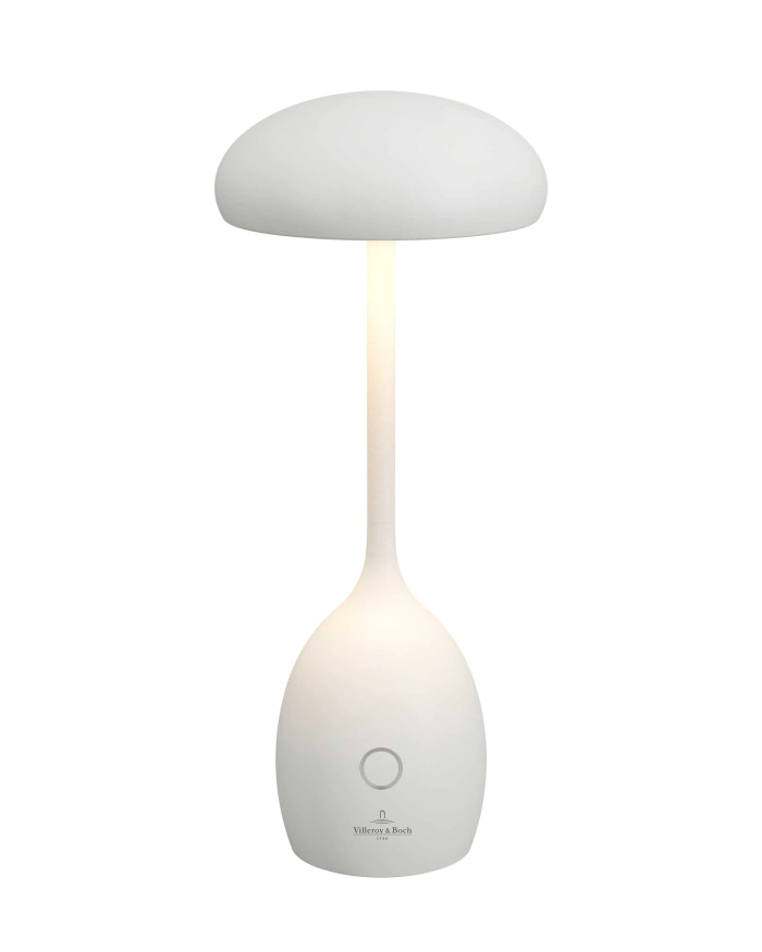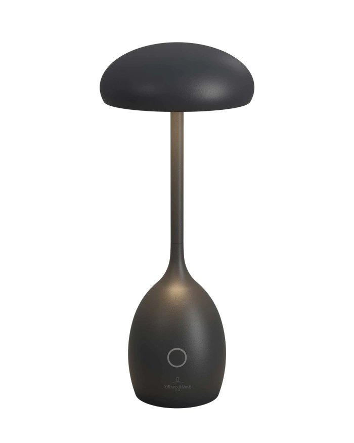 De Triest oplaadbare tafellamp van Villeroy & Boch is elegant, innovatief en flexibel toepasbaar. Het model wordt gekenmerkt door een paddenstoelvormig silhouet en een behuizing van hoogwaardige aluminium. Dankzij de werking op batterijen kan de armatuur draadloos en flexibel worden gebruikt – ideaal voor terrassen, balkons, restaurants, cafés, hotels of lounges.